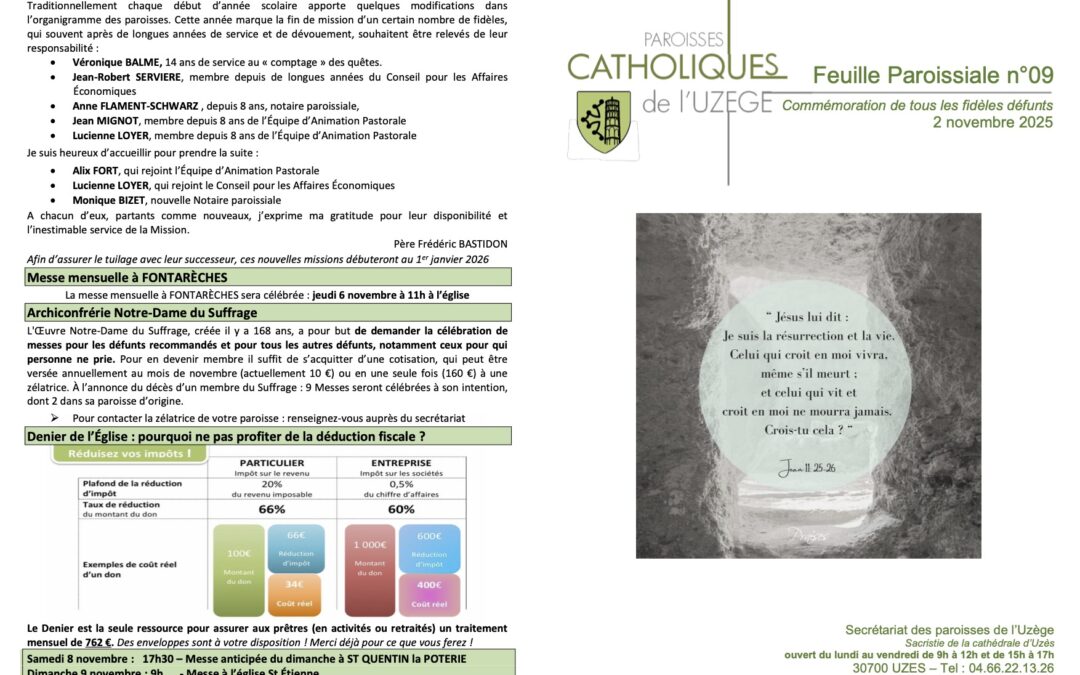 TÉLÉCHARGEZ LA FEUILLE PAROISSIALE DE LA SEMAINE DU 02 AU 09 NOVEMBRE