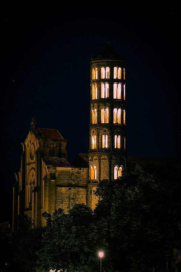 La tour Fenestrelle, clocher de la cathédrale, est un campanile cylindrique, une rareté architecturale.