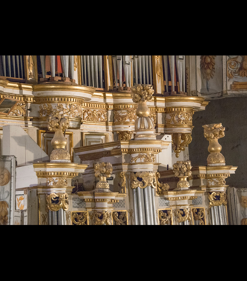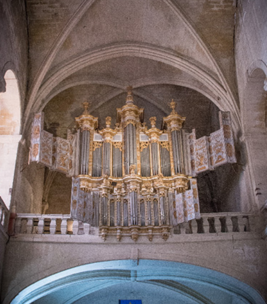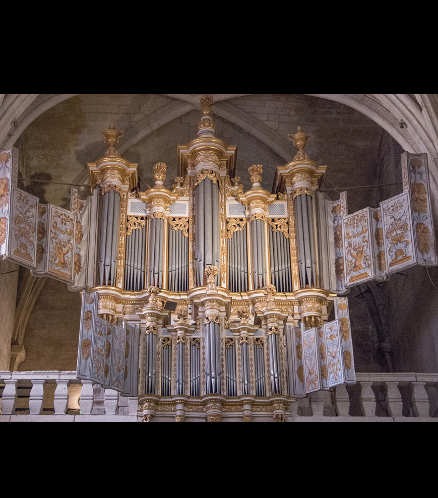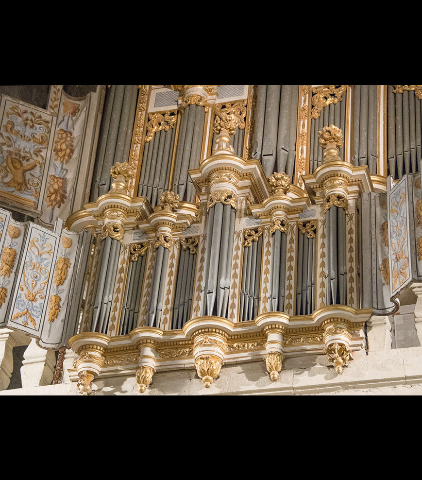 L’orgue que l’on voit est en fait une reconstitution qui a tout de même conservé environ 1100 tuyaux du XVIIème siècle. Les sommiers ont été remplacés et ceux d’origine sont conservés dans la tribune, témoins précieux du travail de l’époque.